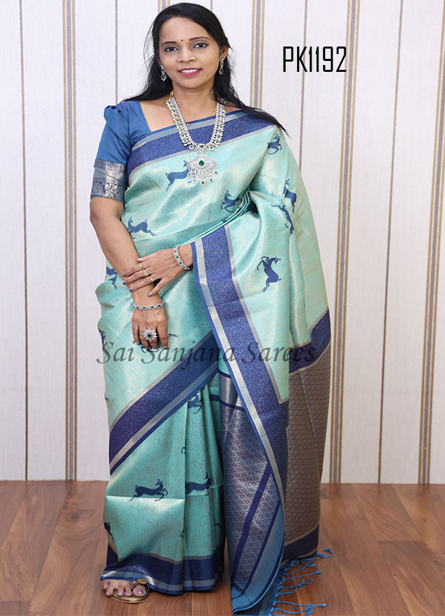 Semi Kanchi Super Soft Silver Zari Tissue Saree