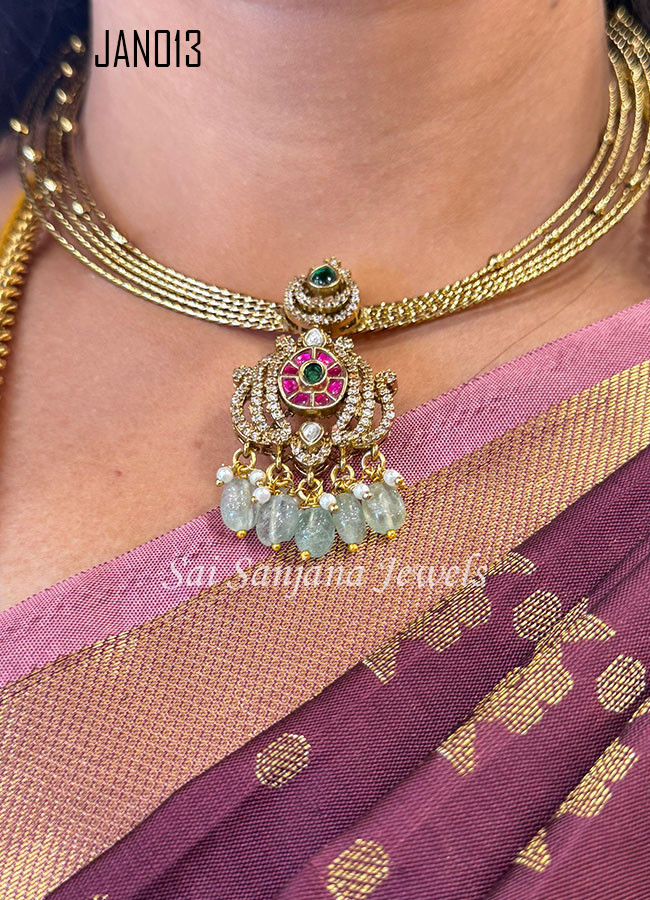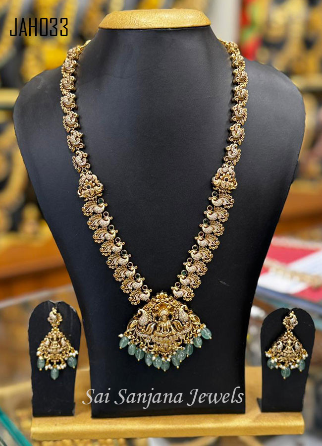 Premium Quality Antique Haram With Green Bead