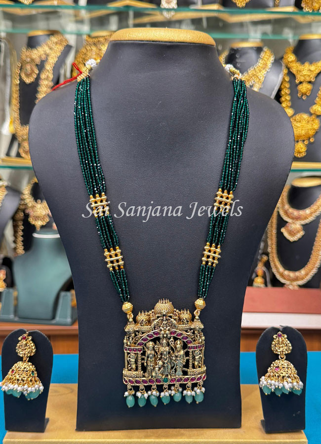 Double Layer Chain with Pendant(Green Beads)