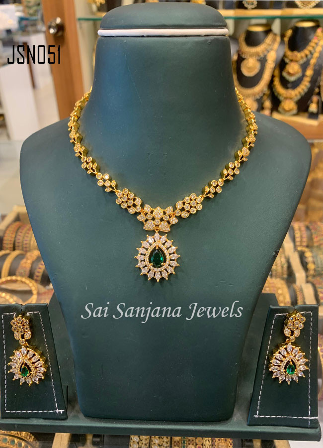 Single Layer Chain With Pendent (Green Bead)