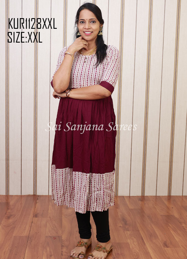 Pannel Cut Wrinkle Casual Kurti Size(XXL)