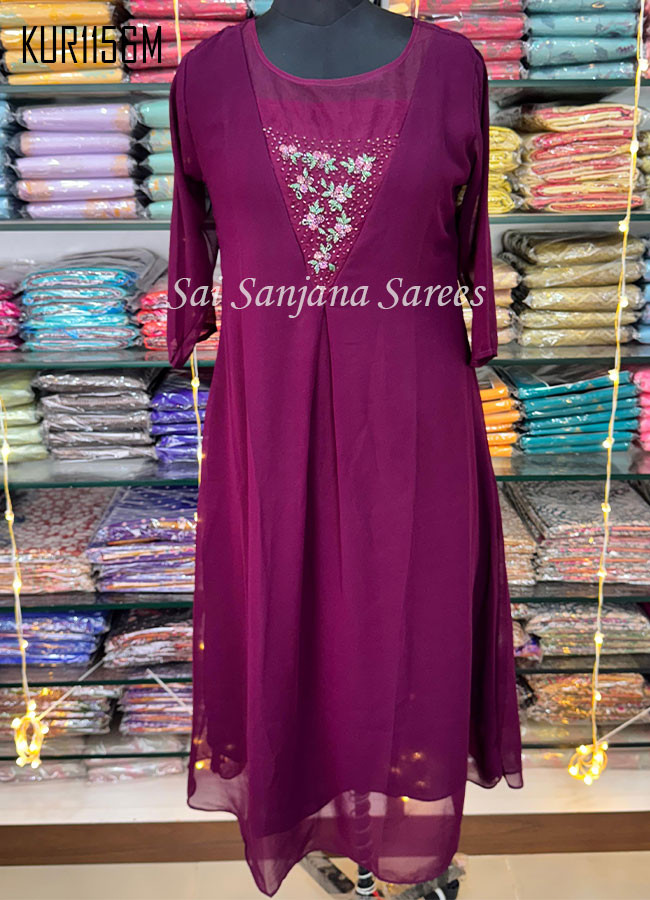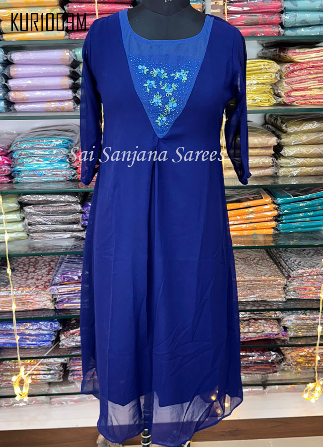 Georgette V neck Hand Aari Work Kurti Size(M)