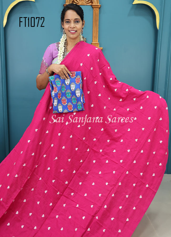 Budget Friendly Heart Khadhi Cotton with Kalamkari Blouse