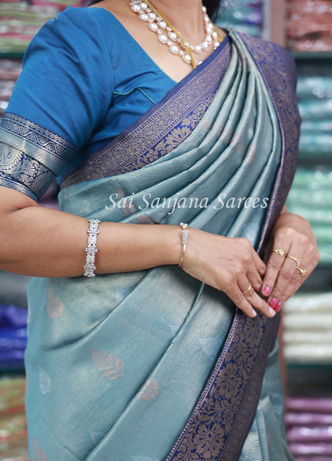 Semi Kanchi Tissue Crusted Semi Silk Saree