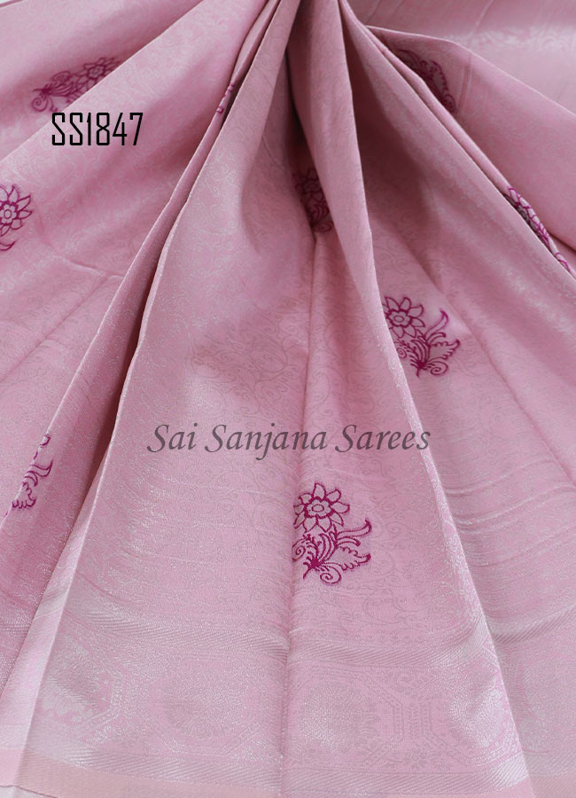 silver zari Semi Kanchi Soft Silk saree
