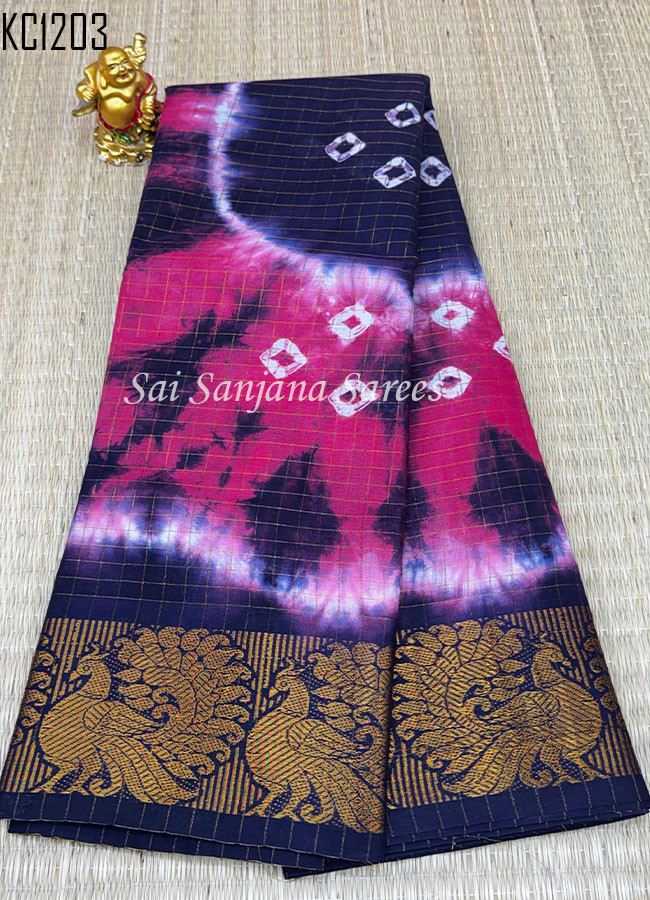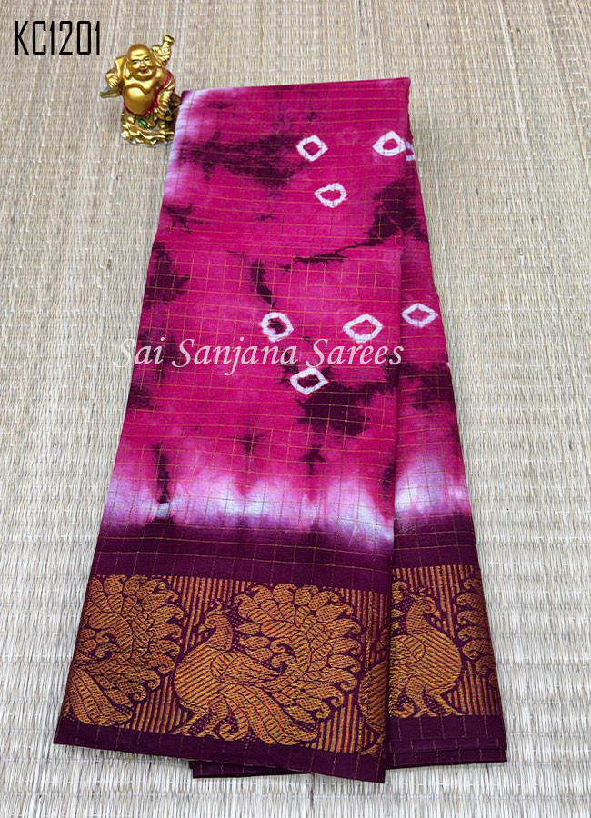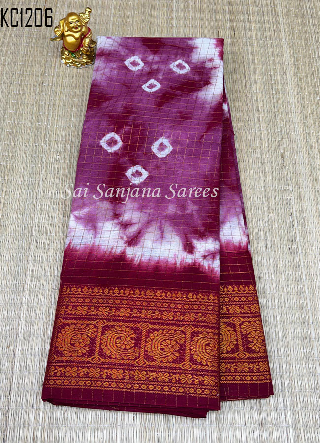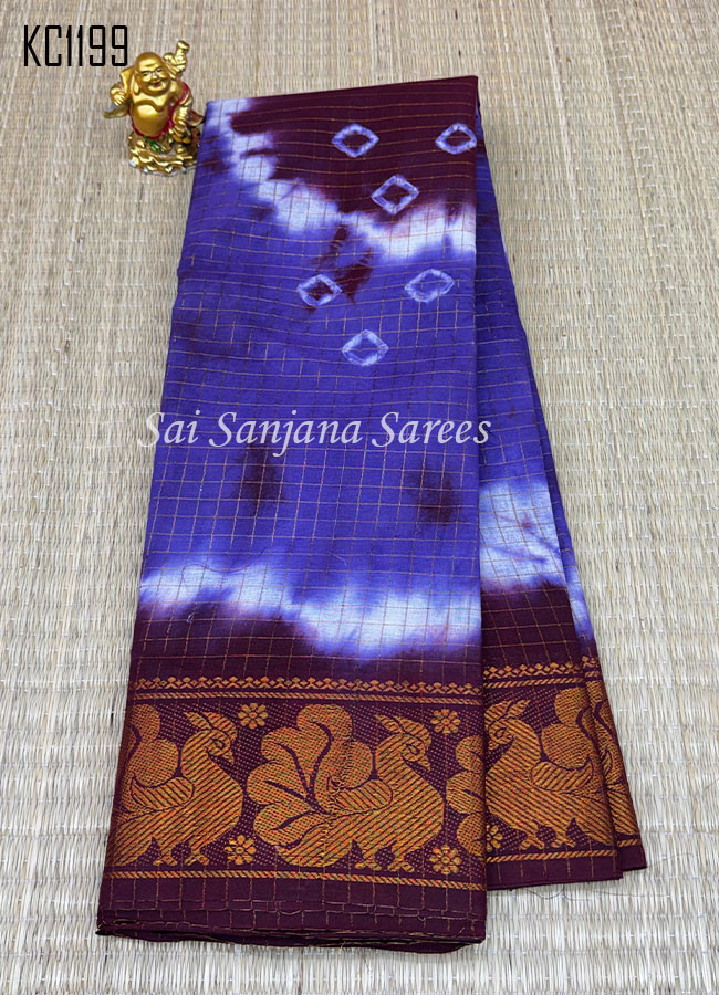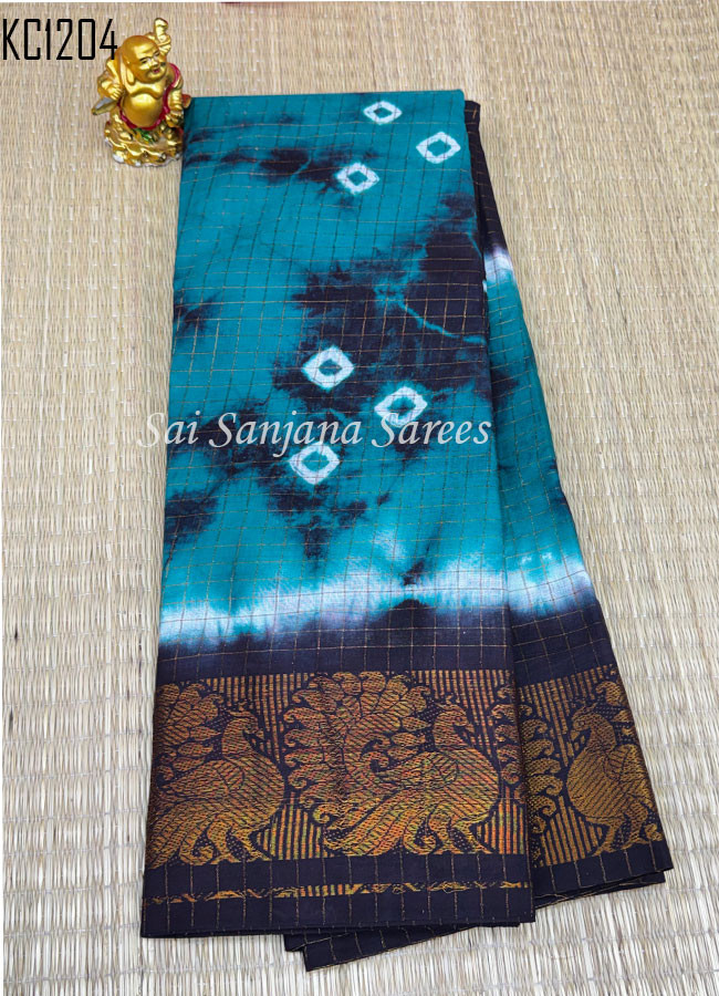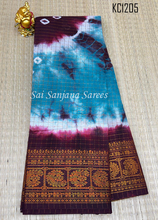 Zari Checks Shibori Print Chungudi Cotton Saree