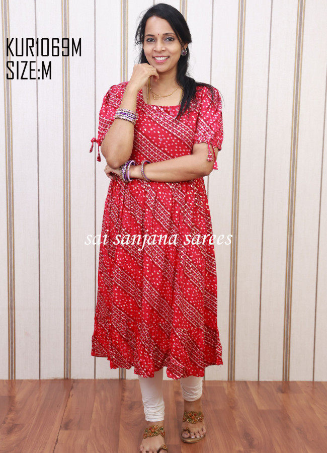 Rayon Umbrella Cut Bandhani Print Kurti Size(M)