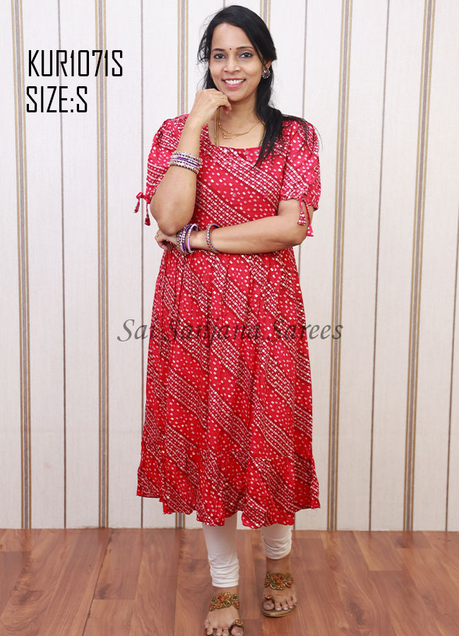 Rayon Umbrella Cut Bandhani Print Kurti Size(S)