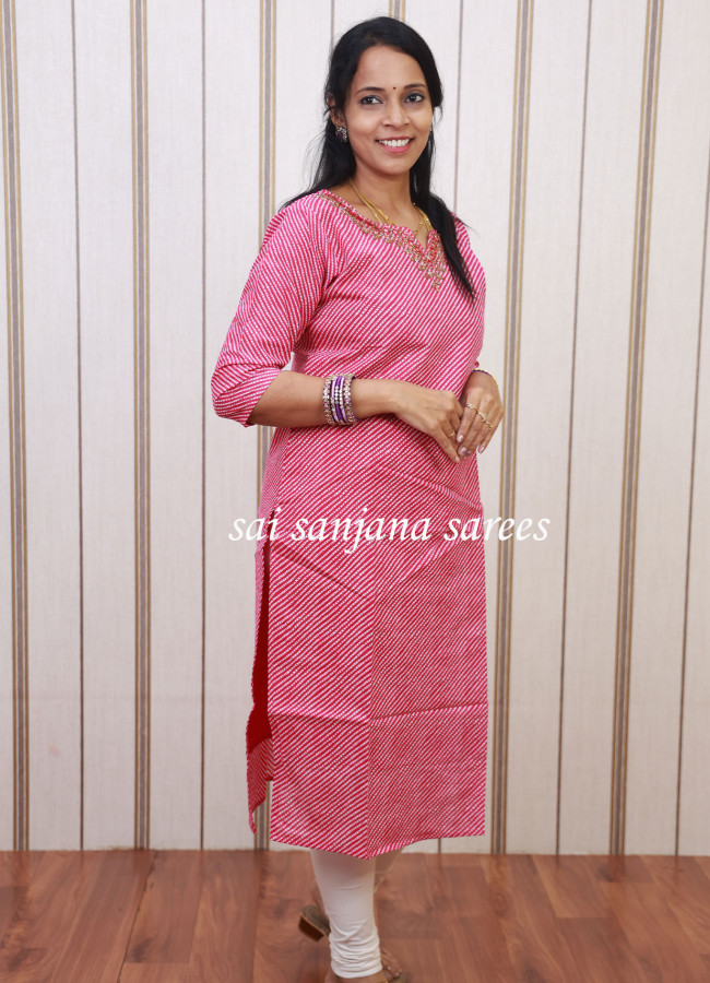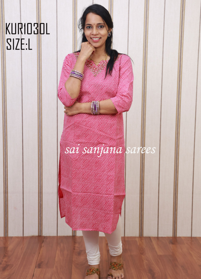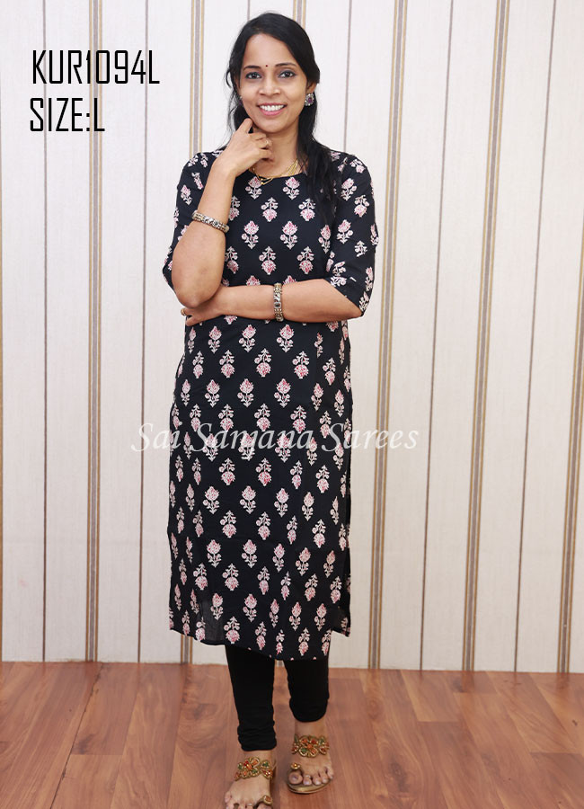 Budget Friendly Cotton A Line Kurti with Slit Size (L)