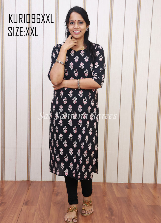 Cotton Printed A line Kurti with Slit Size(XXL)