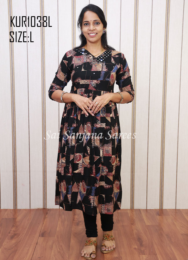 Party Wear Hand Aari Work A Line Kurti With Slit Size(XL)