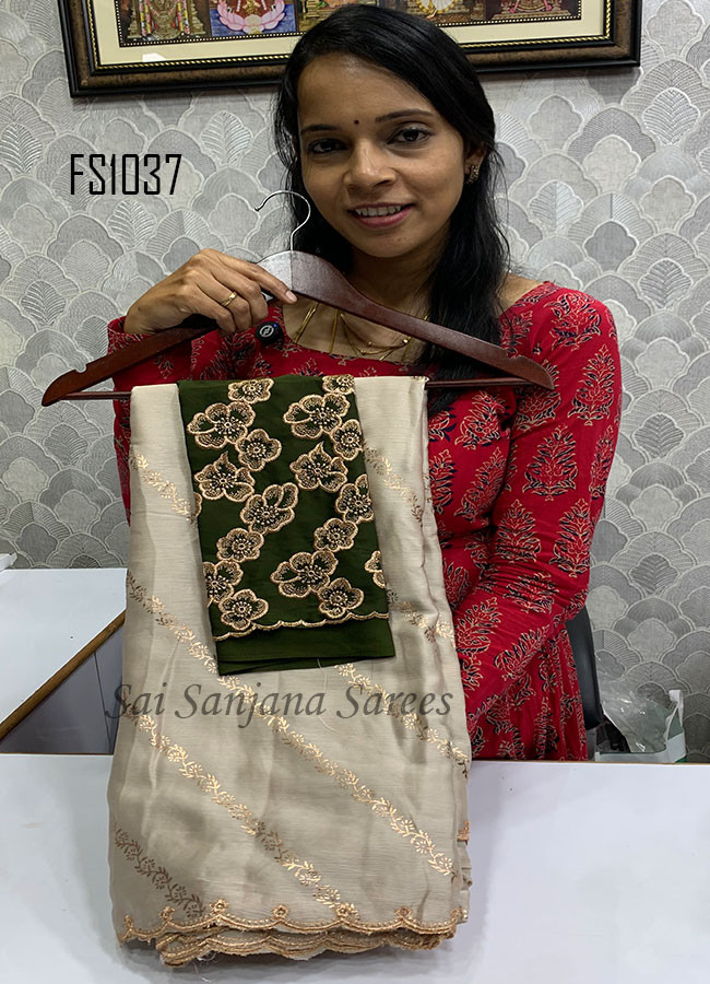 Foil Printed Designer Sarees With Embroidery Work Blouse